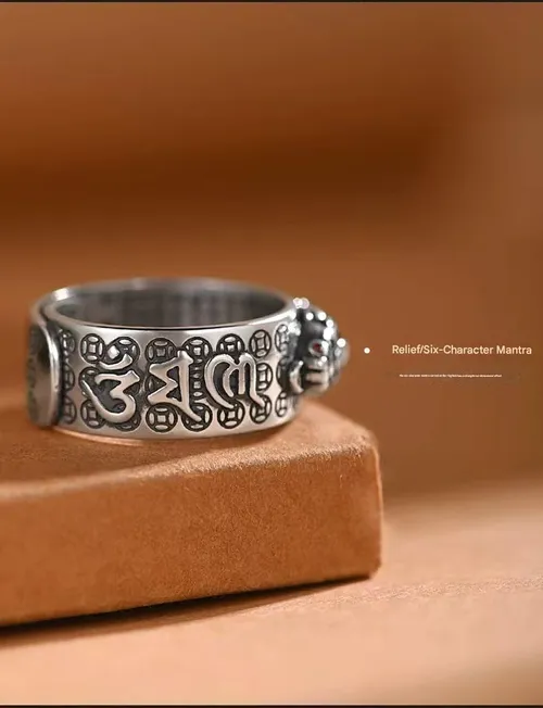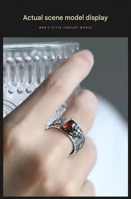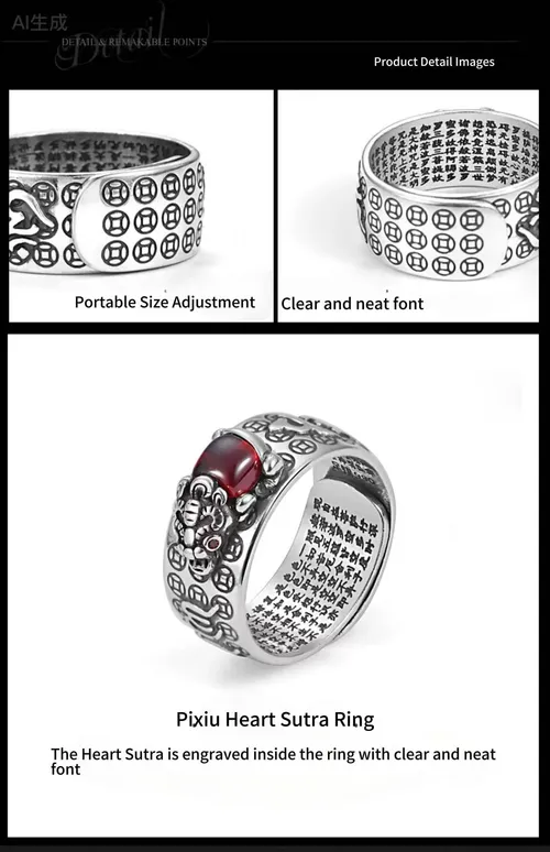 Exquisite Retro Silver Pixiu Ring - Inlaid with Red Sparkling Rhinestones, Engraved with Heart Sutra & Copper Coins (for Good Luck), Adjustable Design (No Size Troubles), Unisex, Daily Wear with a Sense of Blessing2 sales