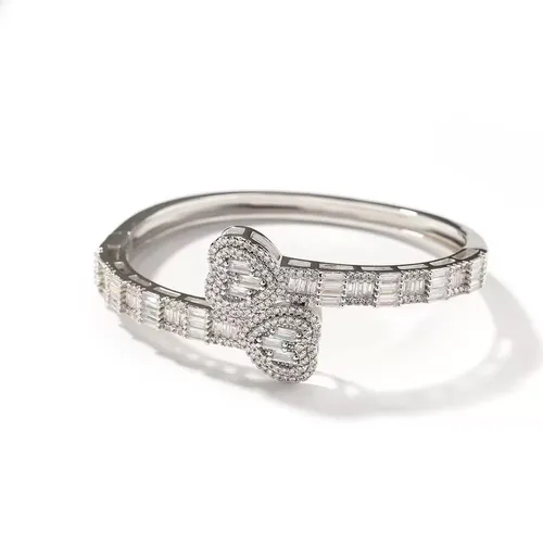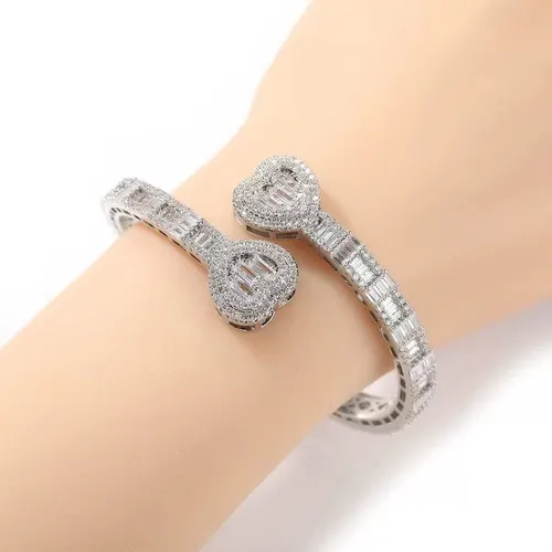 Icy Full Diamond Heart Bracelet The main body is made of exquisite metal. The heart shape and the bracelet body are fully inlaid with bright moissanite diamonds, and the design is exquisite and gorgeous. It is equipped with a buckle design, and the special size is suitable for all people. It is unisex and can easily show noble and luxurious texture.