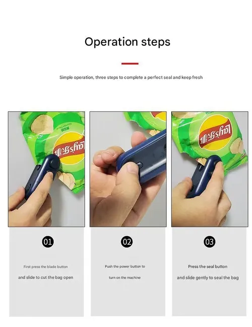 Mini Sealer Machine Button-Activated 2-in-1 Cut and Seal Rechargeable Long-Lasting Battery for Home Snacks Moisture-Proof Vacuum-Sealing